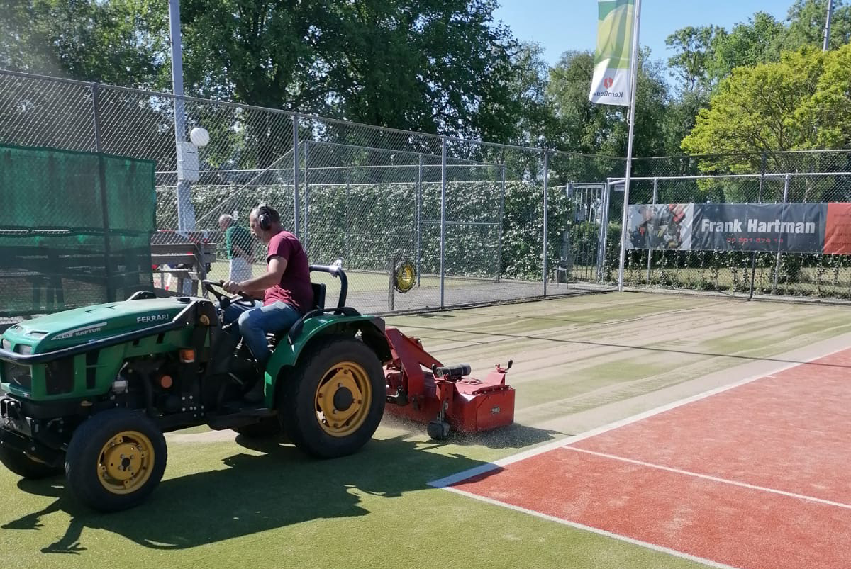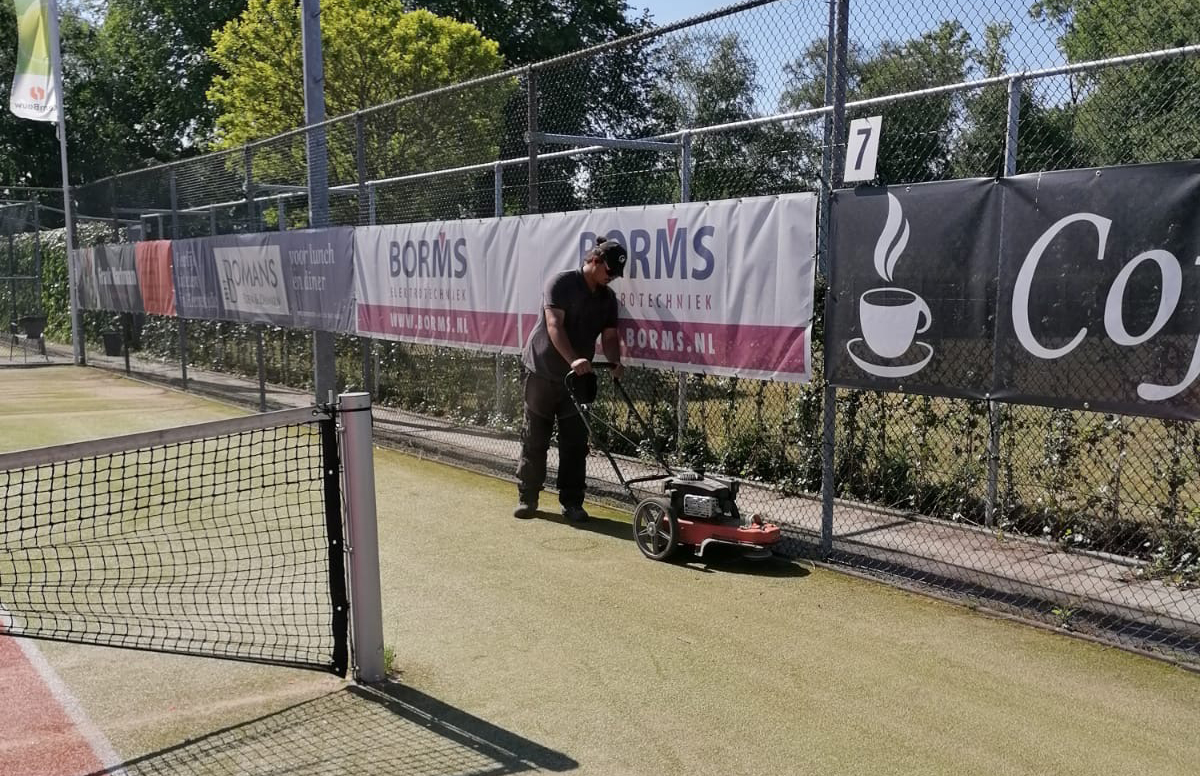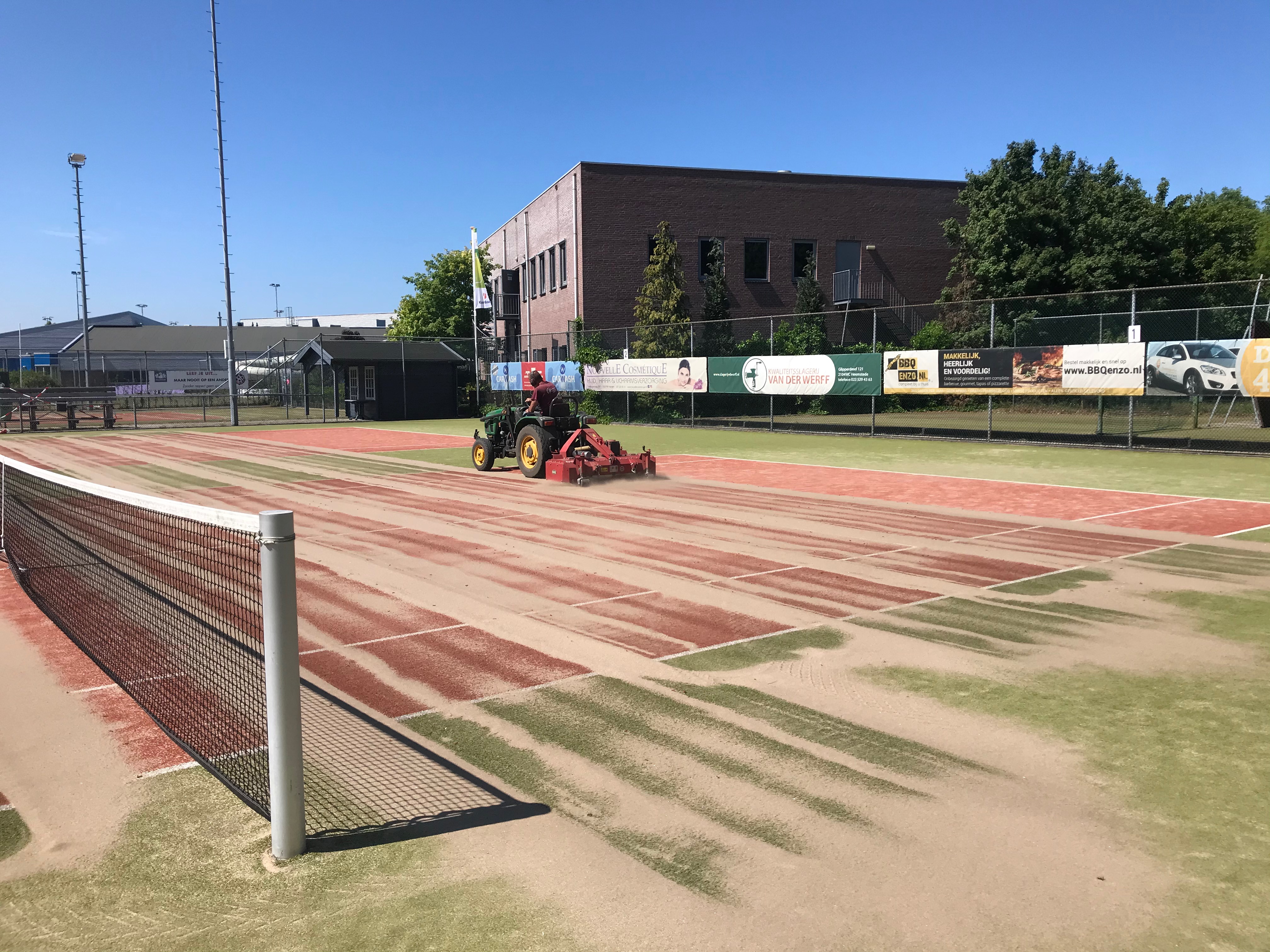 Vandaag en morgen 19 en 20 mei is er onderhoud op de banen. Per 2 banen worden de 'matten geklopt'. Tijdens de werkzaamheden kan er WEL worden gespeeld. Is de baan waar jij hebt geboekt aan de beurt? Dan zal de toezichthouder (Hans of Tineke) je een andere baan aanwijzen.