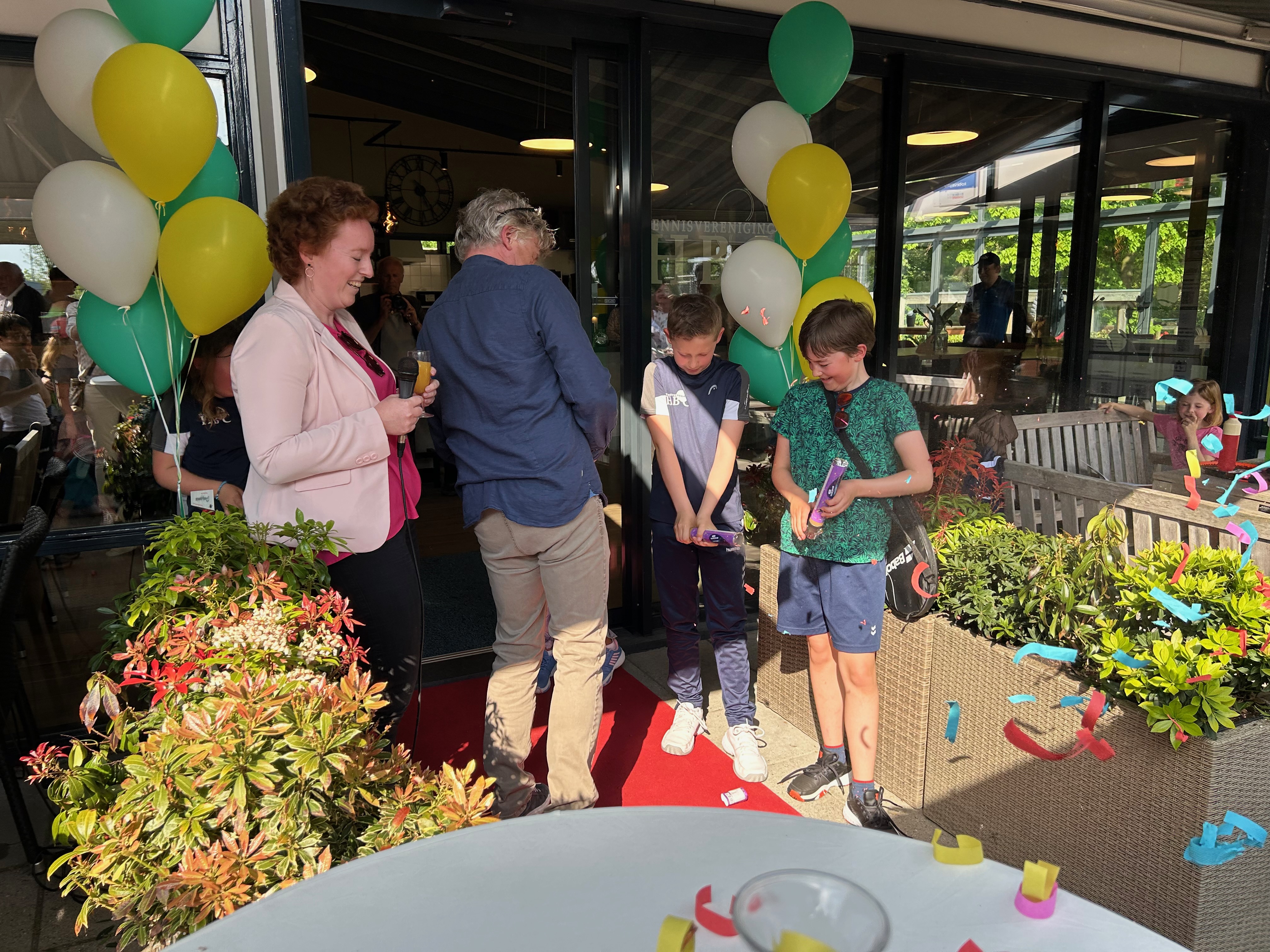 De organisatie had geen mooiere middag kunnen uitzoeken om ons prachtige clubhuis te openen. Het terras was gezellig versierd en uiteraard waren er 'bubbels'! Ook de jeugdleden waren van de partij om te assisteren bij de opening. Zo'n 80 leden zijn gekomen om dit gezellige evenement mee te maken.