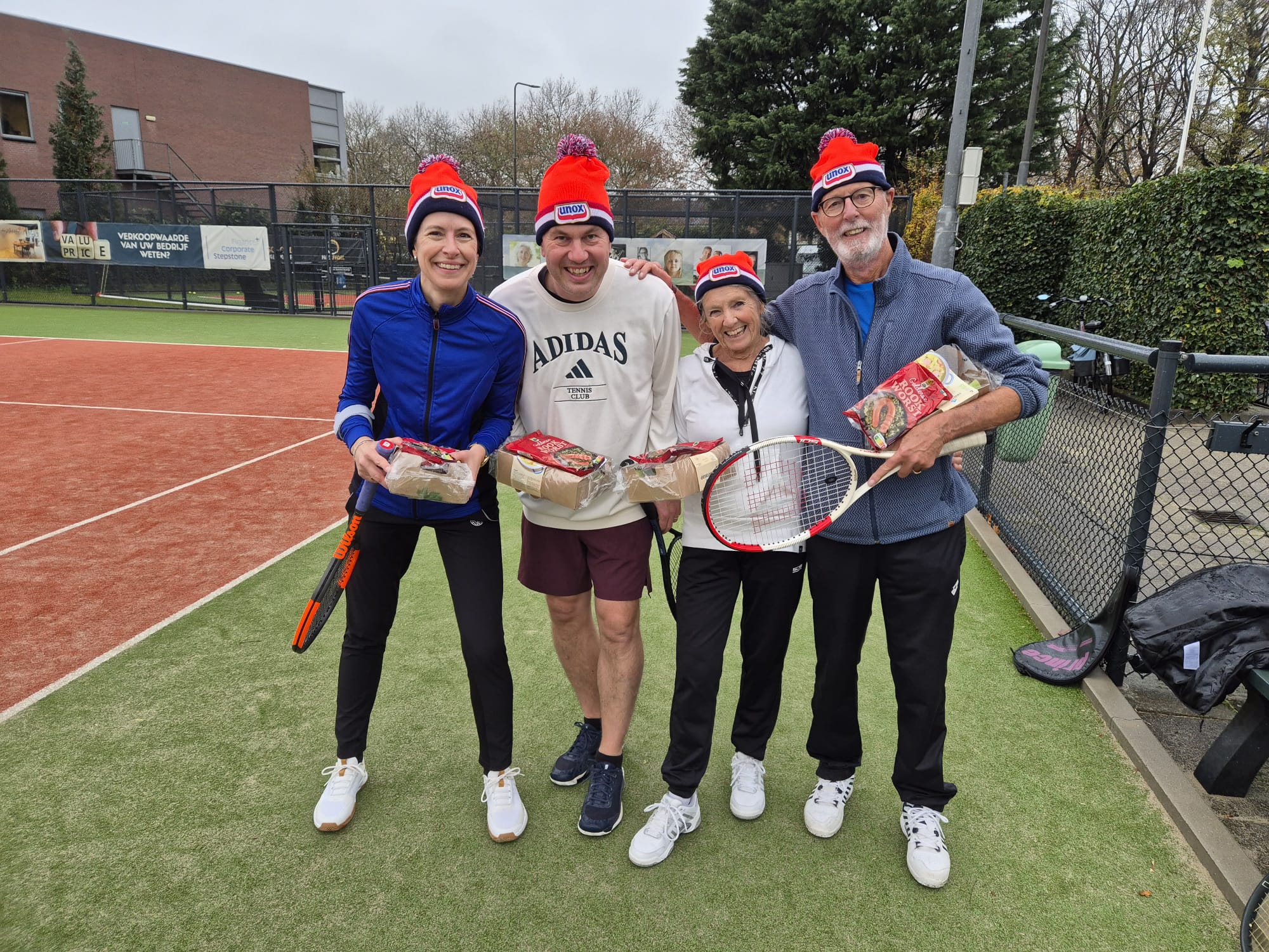 Een dag lang miezerige regen bleek geen enkele spelbreker voor de 56 enthousiaste deelnemers die zich hadden ingeschreven voor het altijd gezellige Snerttoernooi. Al vanaf 11.00 uur stonden de eerste 28 spelers, na koffie met speculaas, klaar om hun partijen te spelen in het lichte buitje – typisch Hollands snertweer, maar niemand die zich liet tegenhouden.