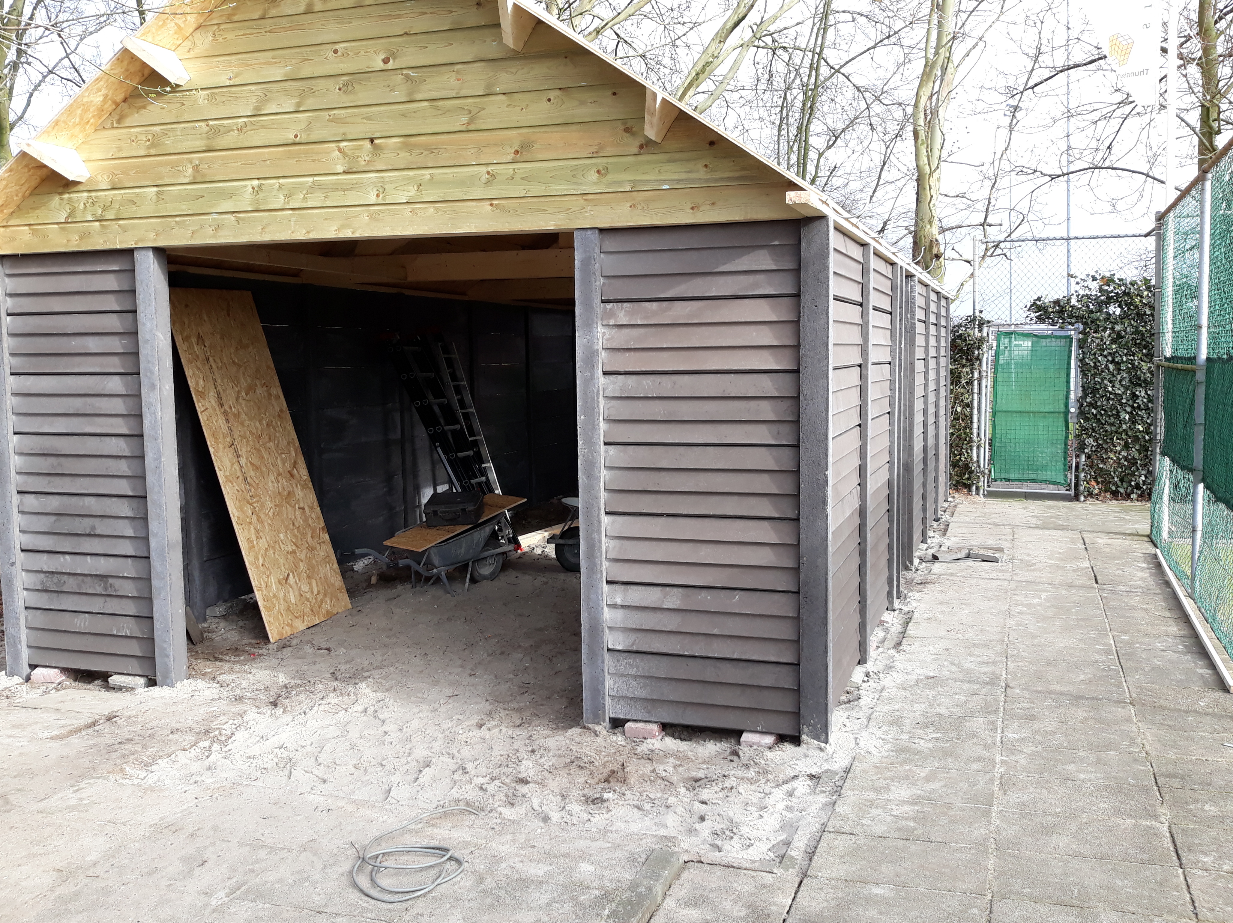 De nieuwe loods is afgelopen week geplaatst, zoals jullie hebben gezien. Over een week of drie wordt de ondergrond betegeld en kunnen alle spullen, zoals die, die nu in de rookplek staan, weer terug in de loods.