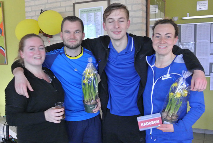 De finale van het gemengd dubbel 6 tijdens het HBC Dubbel Open was een clubonderonsje. Cyril en Vincent gingen er met de eerste prijs vandoor. Het Runner-up team is Roos en Wouter.